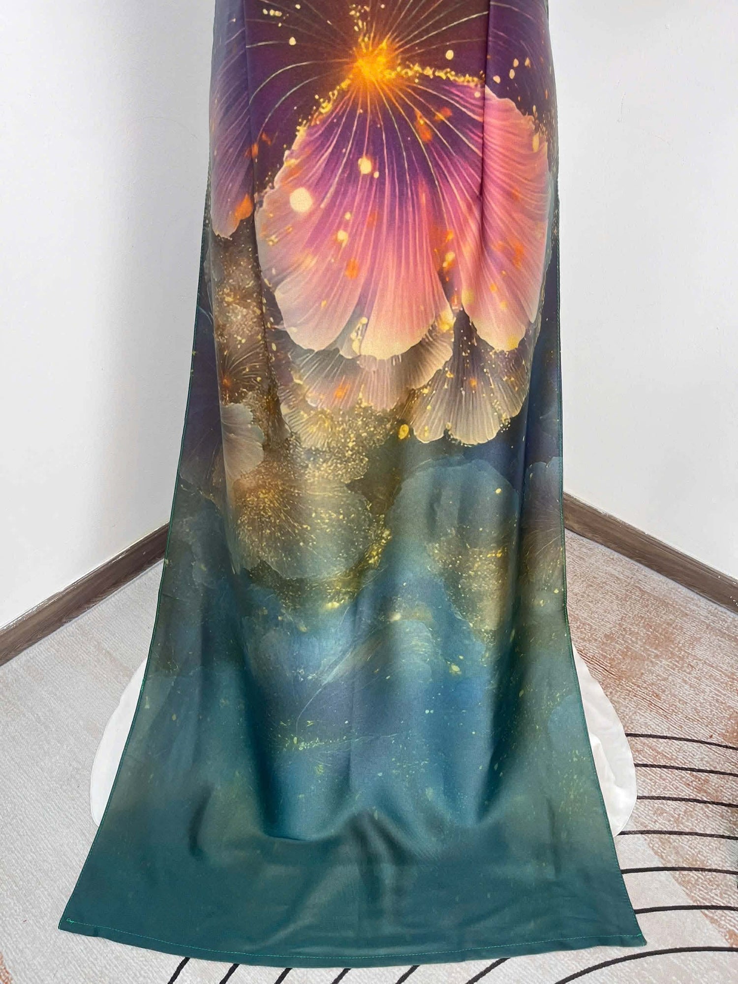 H489 1969 Áo only - Áo dài lụa ánh sao màu loang