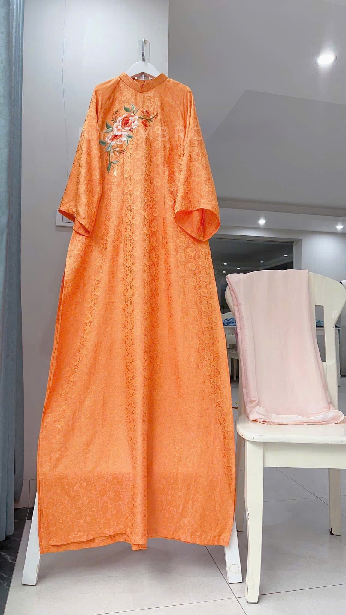 HD105 Áo only - Áo dài lụa Hà đông thêu cao cấp màu cam