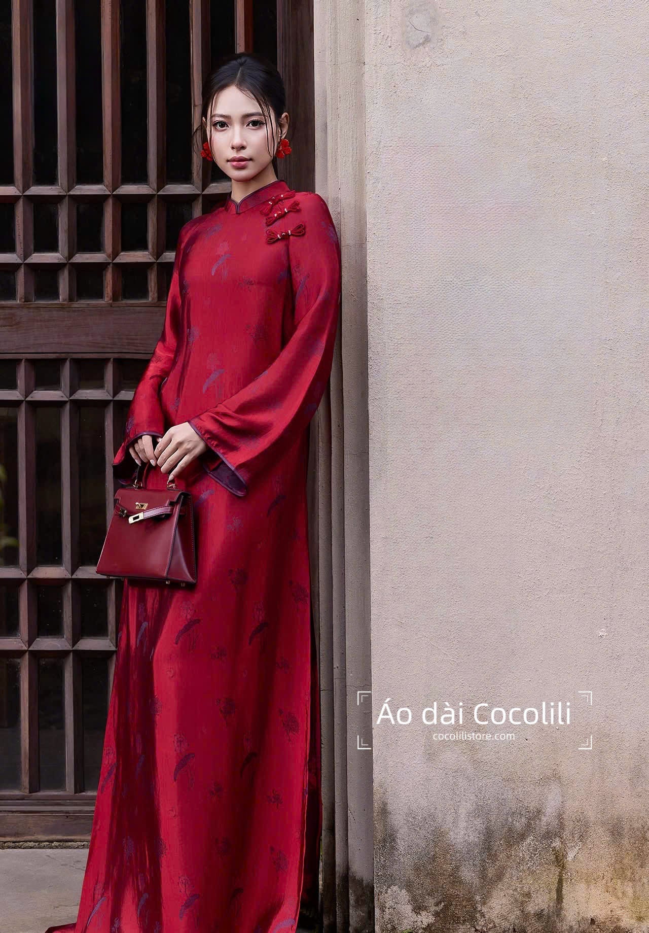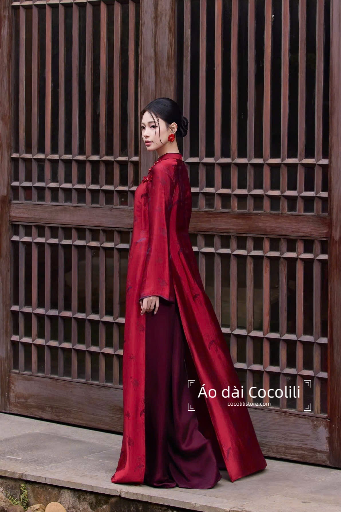 HD41 Áo + quần - Áo dài lụa tơ tằm Nha Xá đỏ
