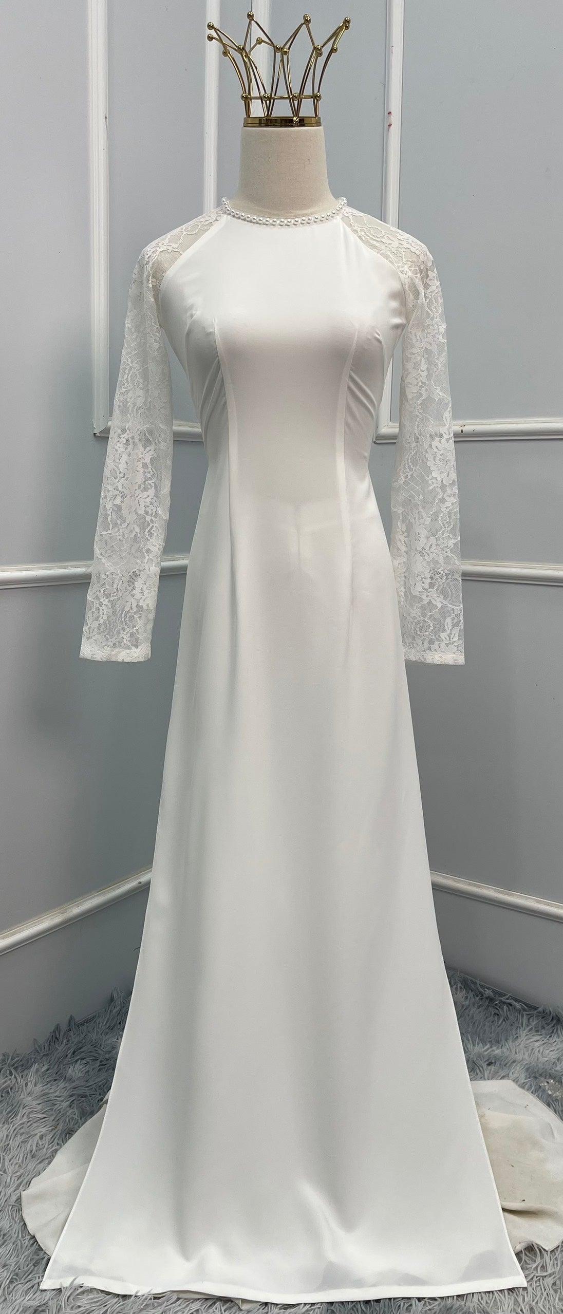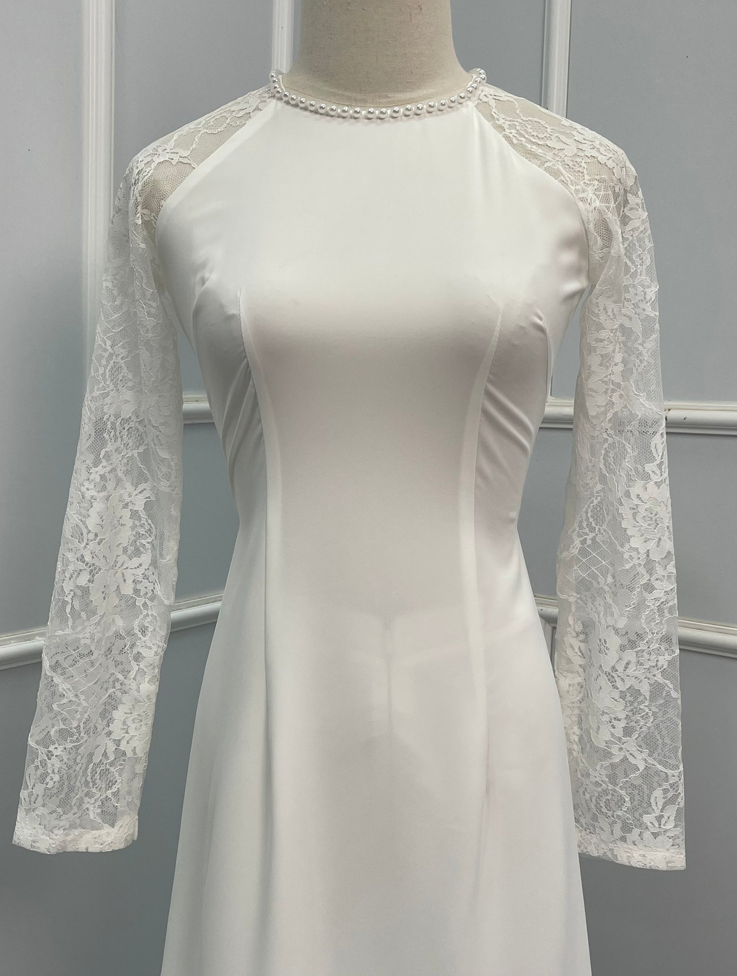 L1371 Áo only - Áo dài ren trắng lụa mỹ
