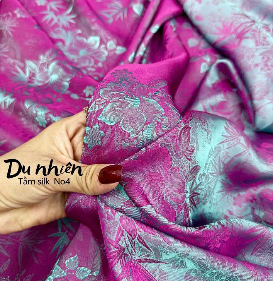 M244 Áo + quần - Áo dài Lụa gấm 2 da chuyển sắc cổ tròn + quần đổi màu cùng chất