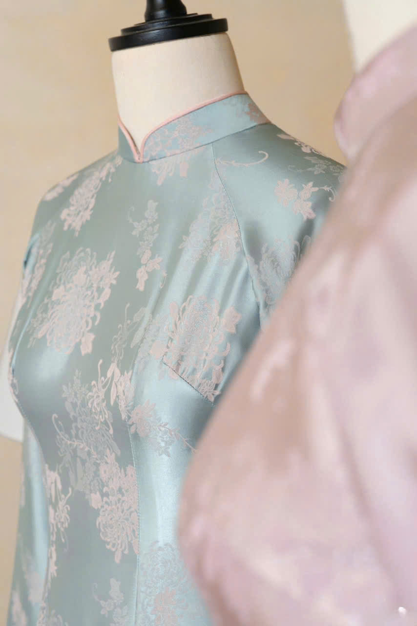 M277 2132 M278 Áo + quần lụa - Áo dài dáng truyền thống lụa gấm cúc đại đoá