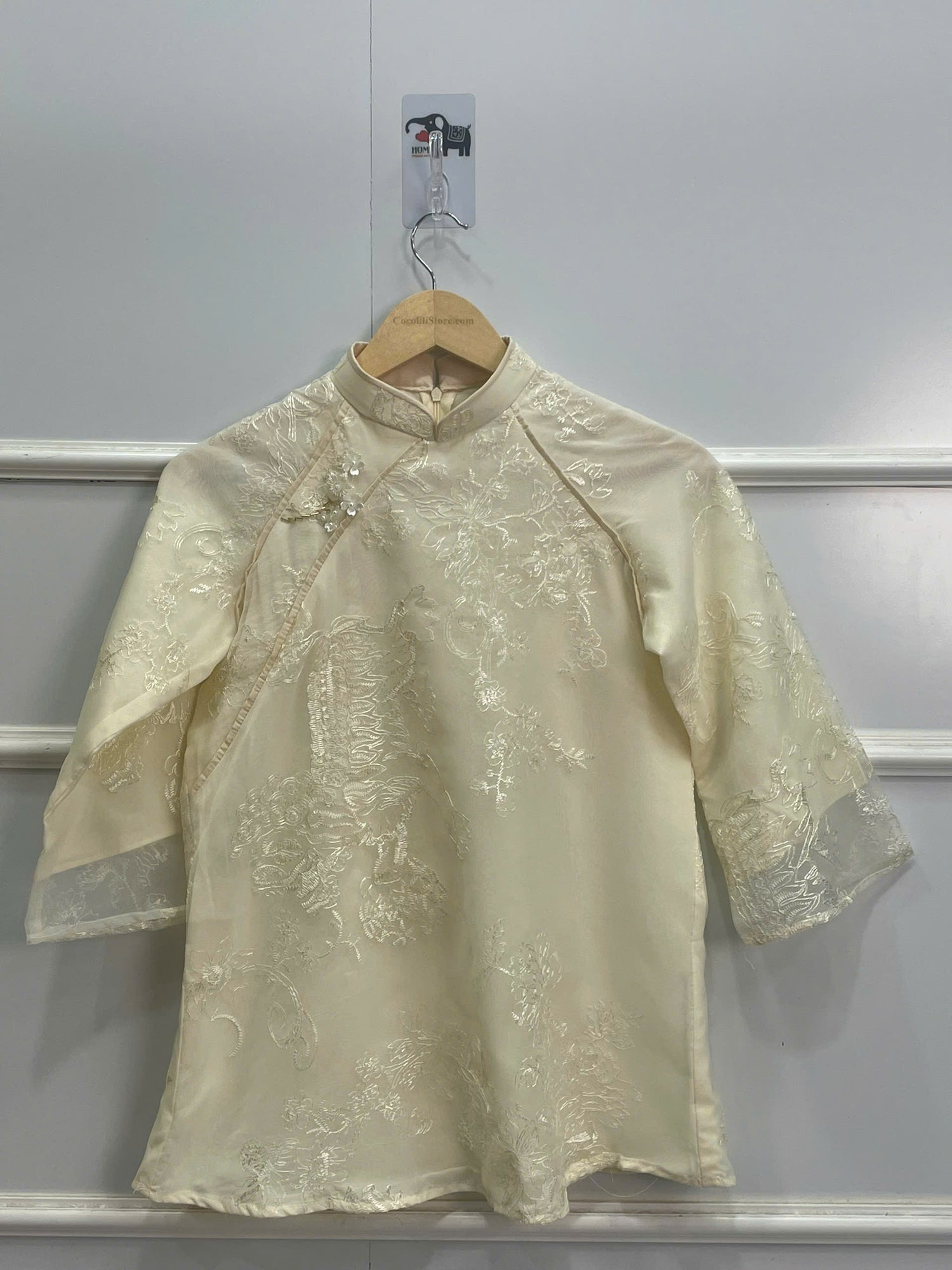 PP91 1363 Áo + quần - Bộ pháp phục màu kem thêu đính kết