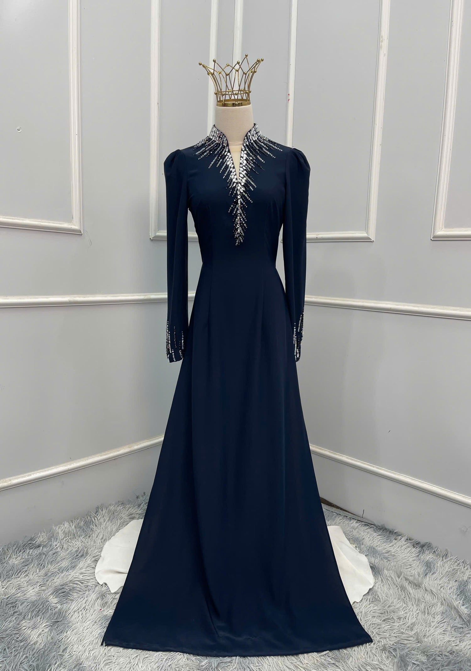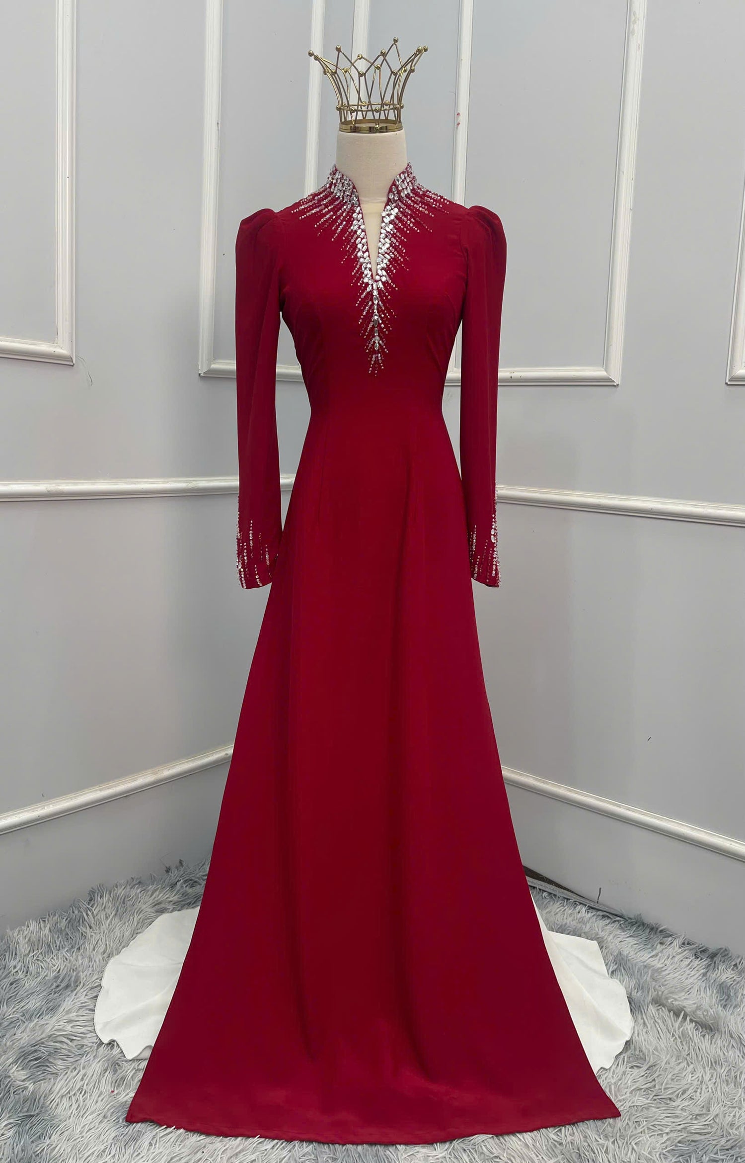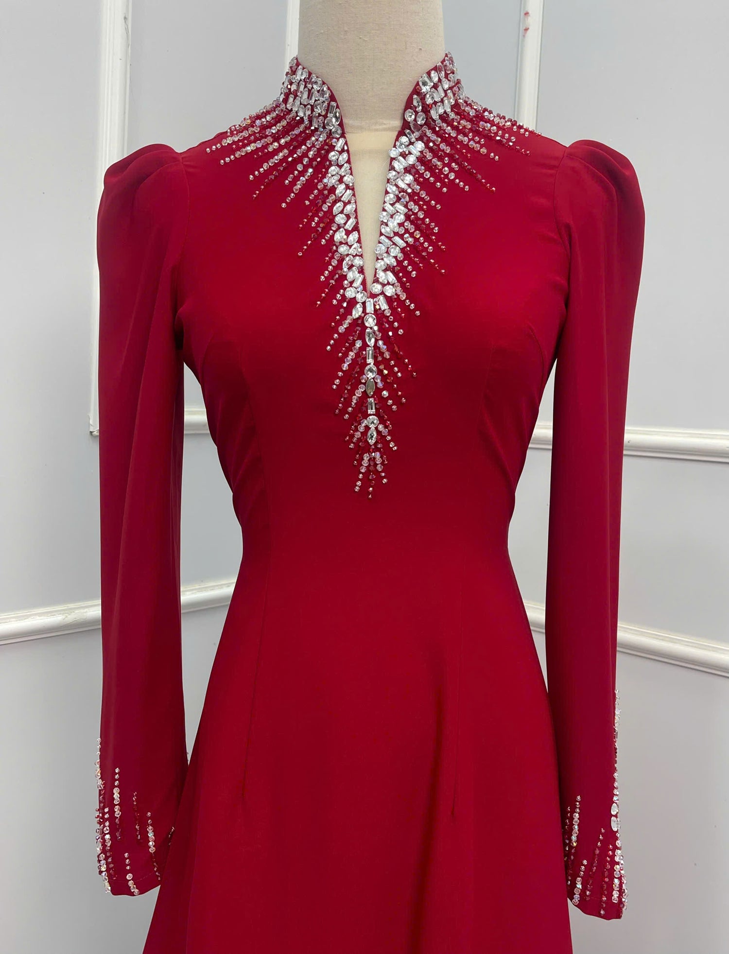 S207 Áo only - Áo dài lụa mỹ đính cổ