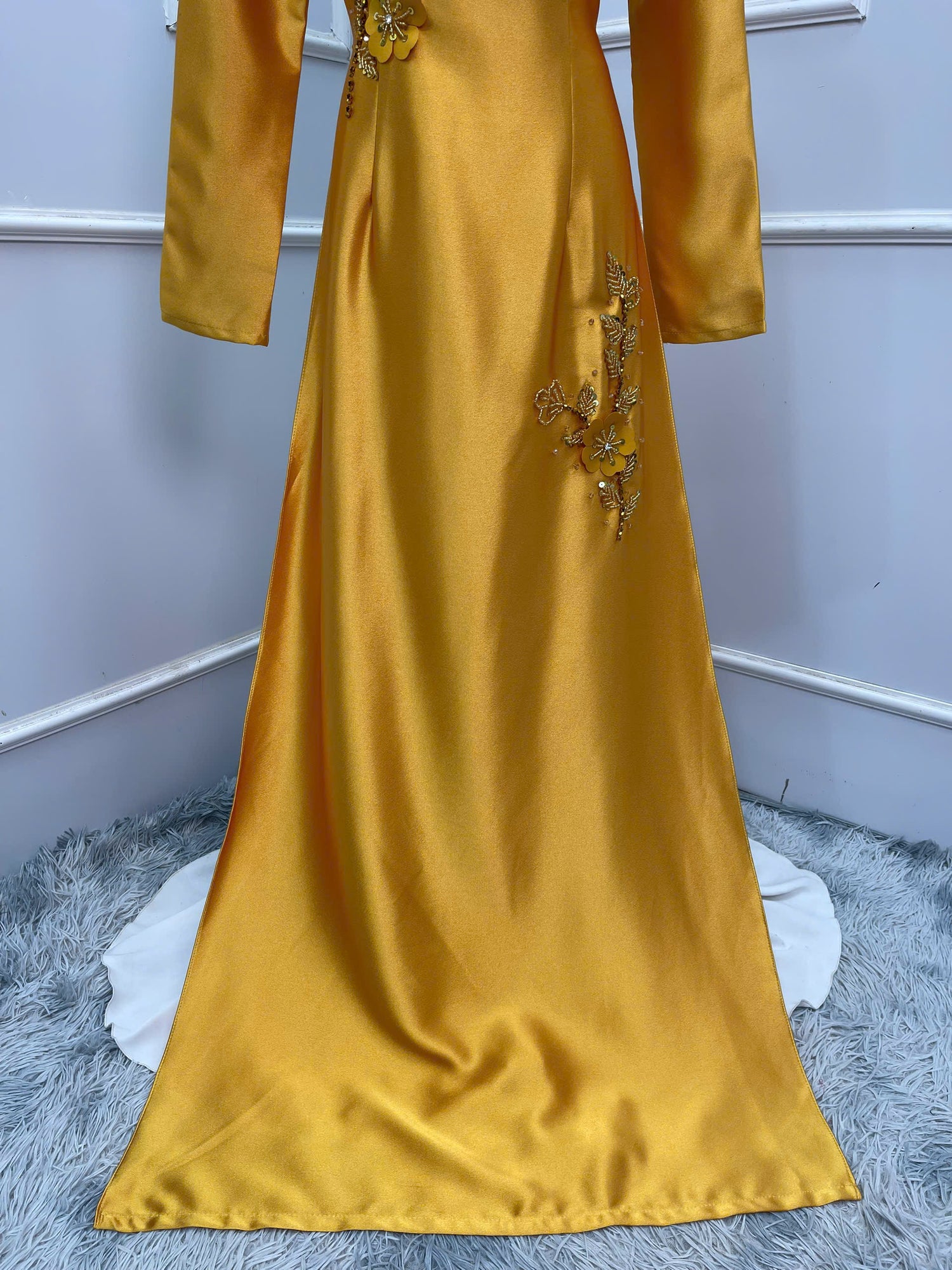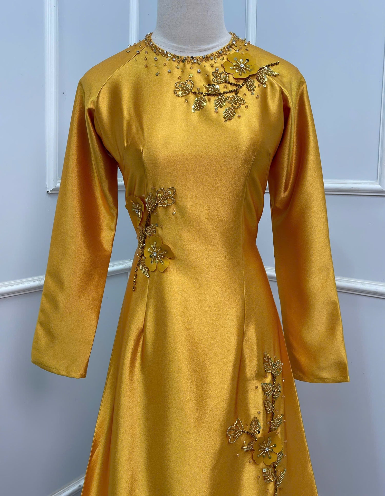S217 1510 Áo only - Áo dài lụa valentino đính kết màu vàng