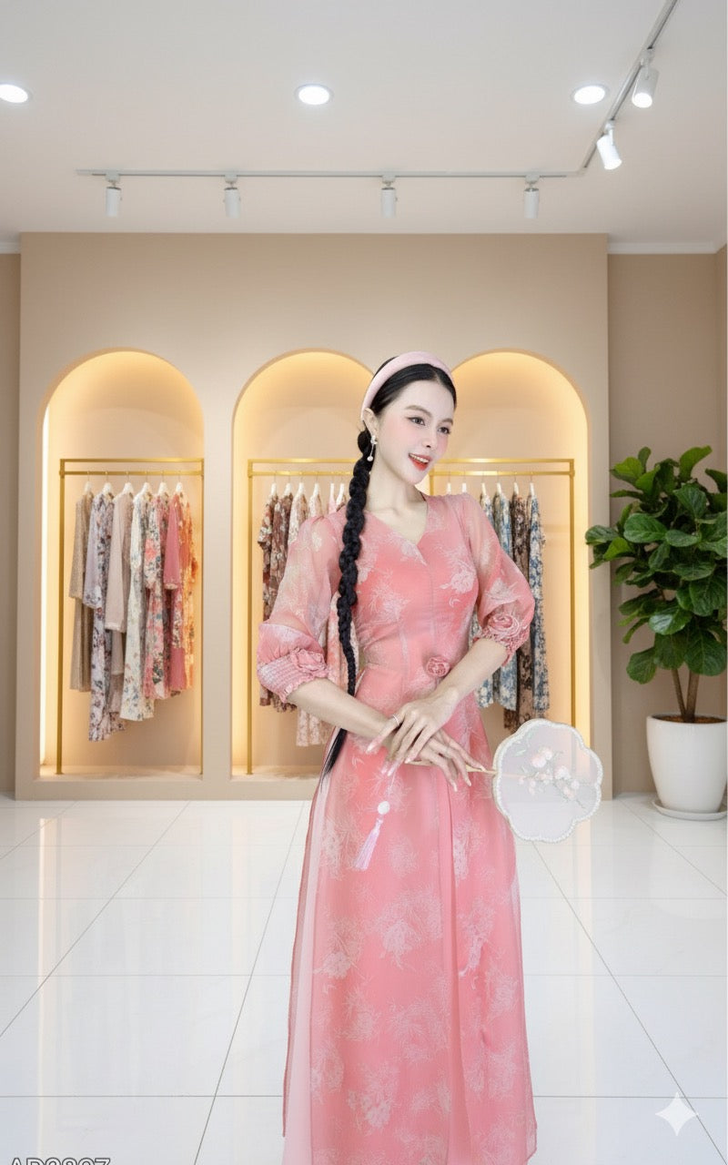 AD2897 Áo Dài only 4T Hoa Hồng Chun.
