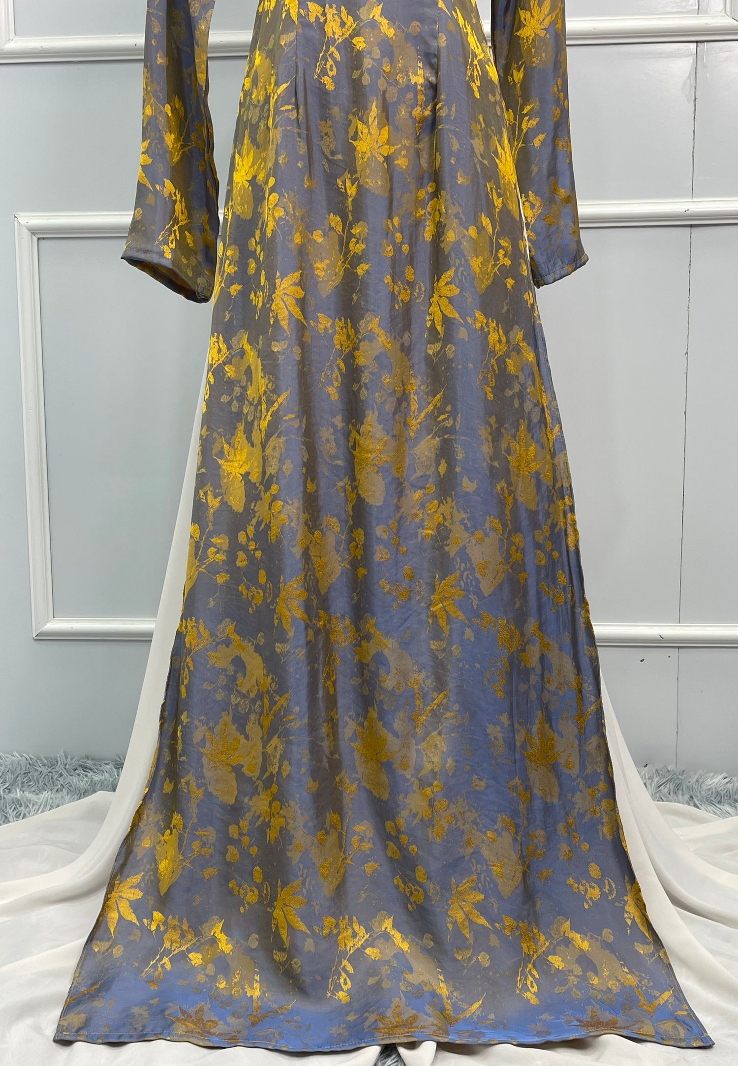 T357 Only áo- Áo dài tơ tằm vàng ánh xanh