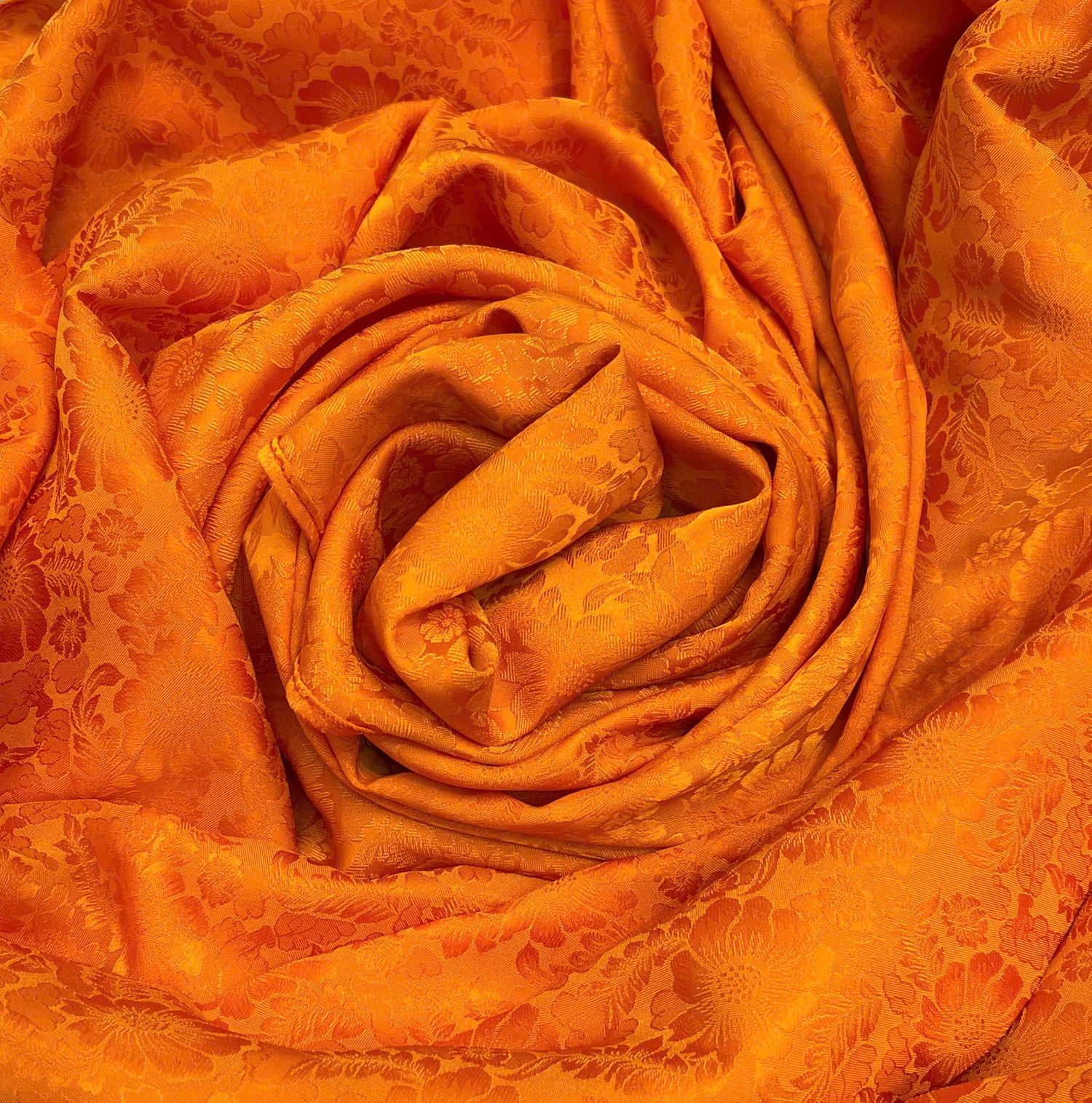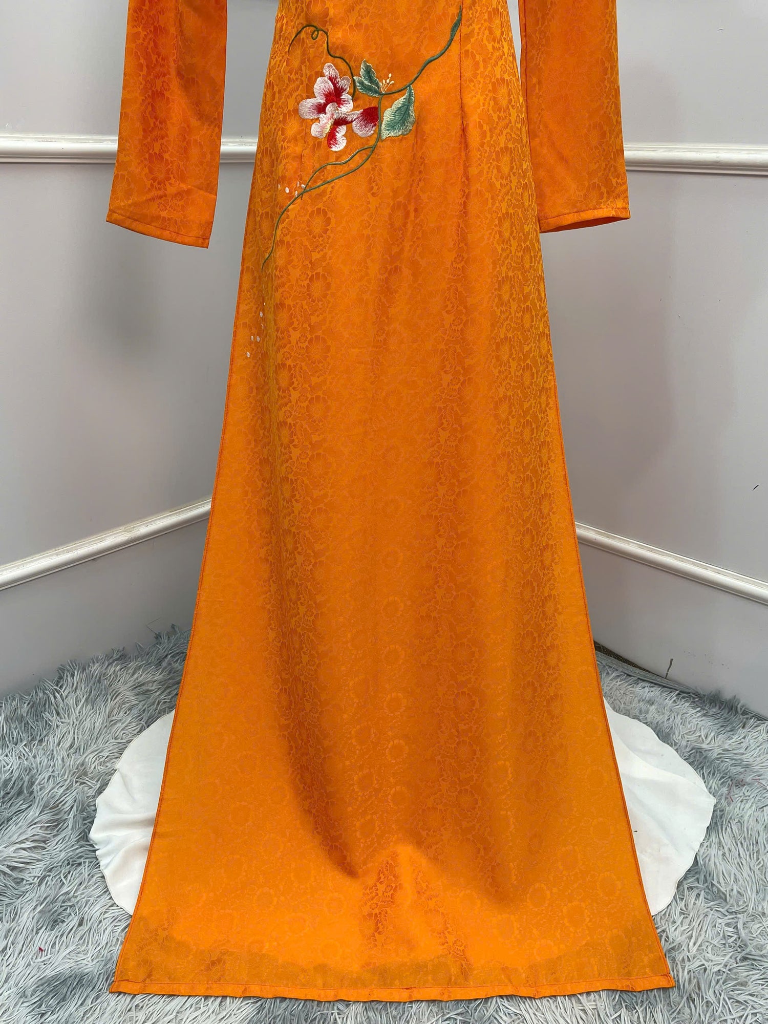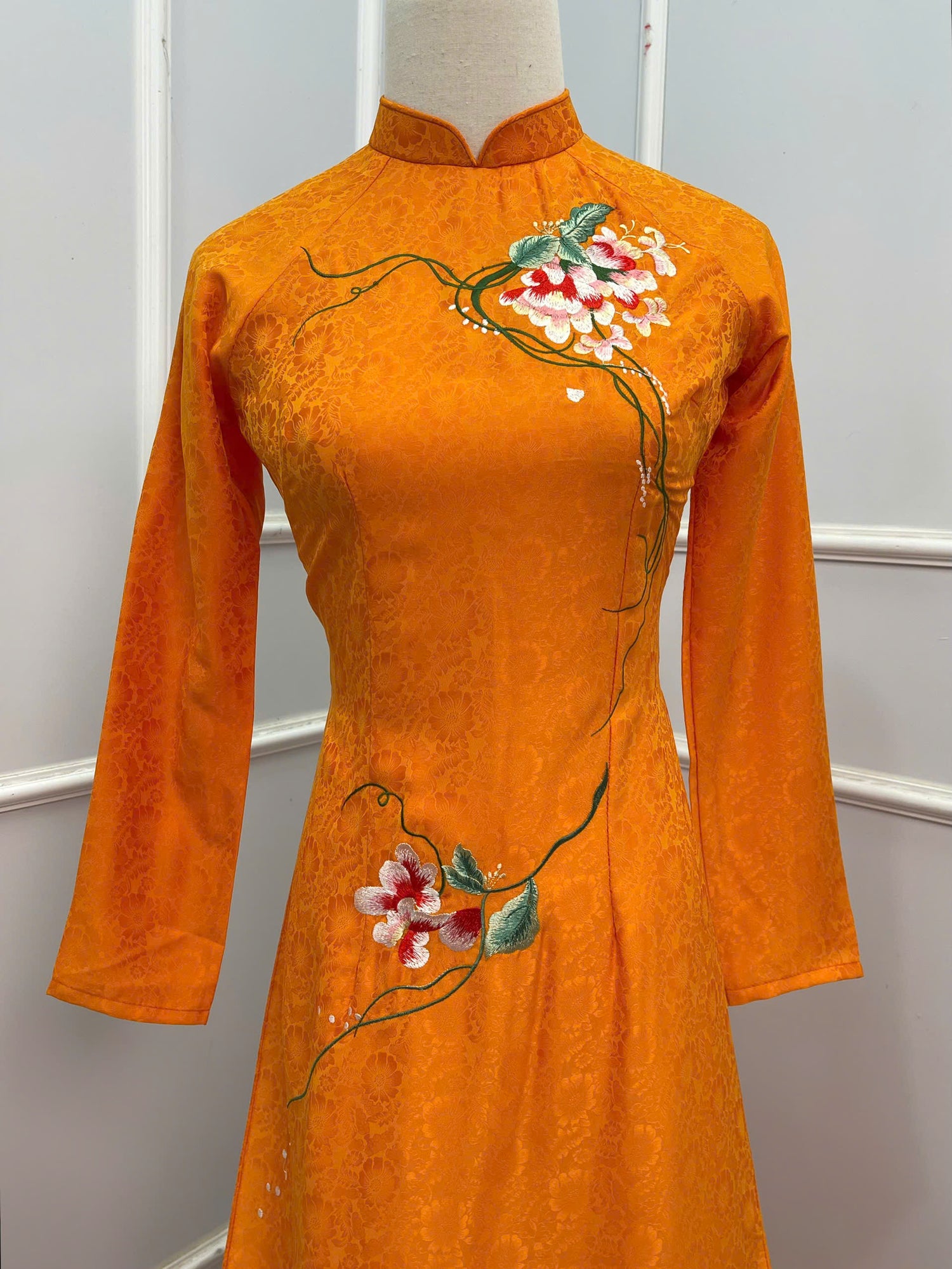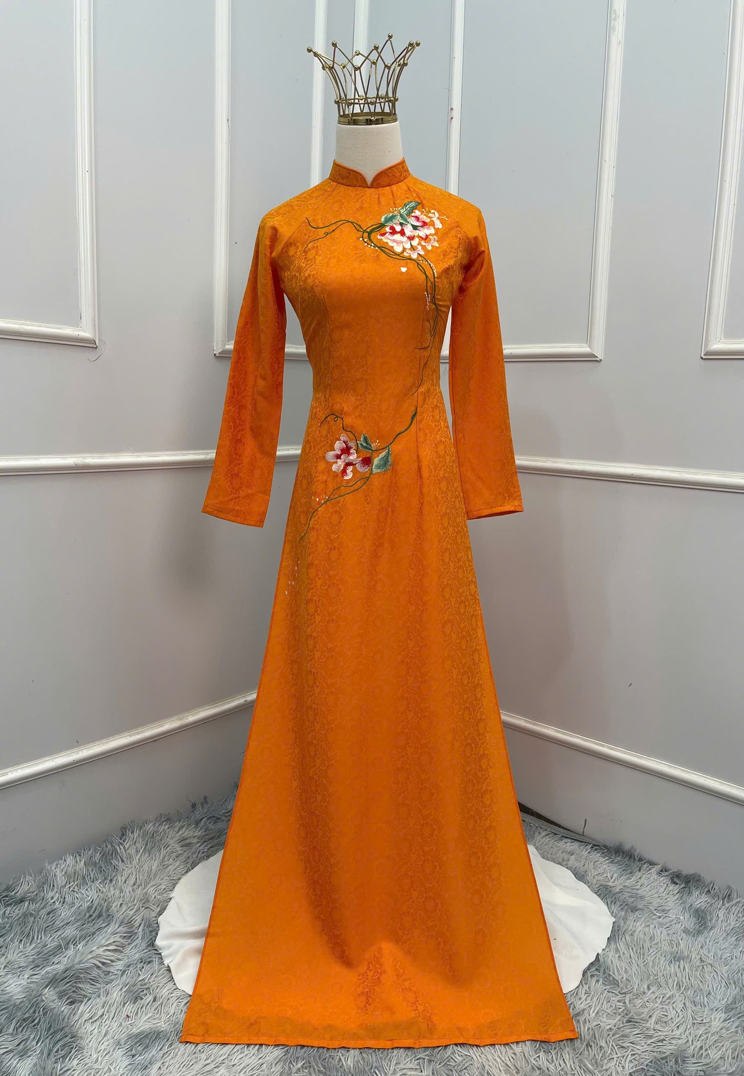T602 Áo only - Áo dài lụa hoa trà màu cam